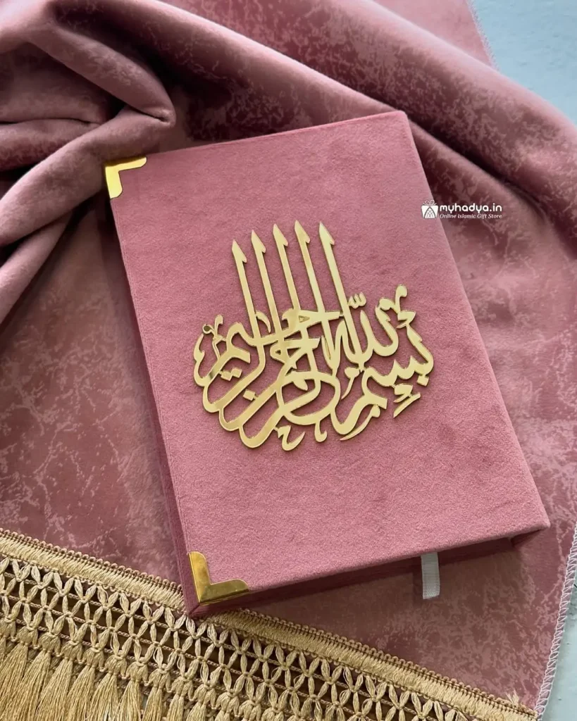 Premium Velvet Quran and Musallah Set | Dust Pink | Myhadya Islamic Gifts