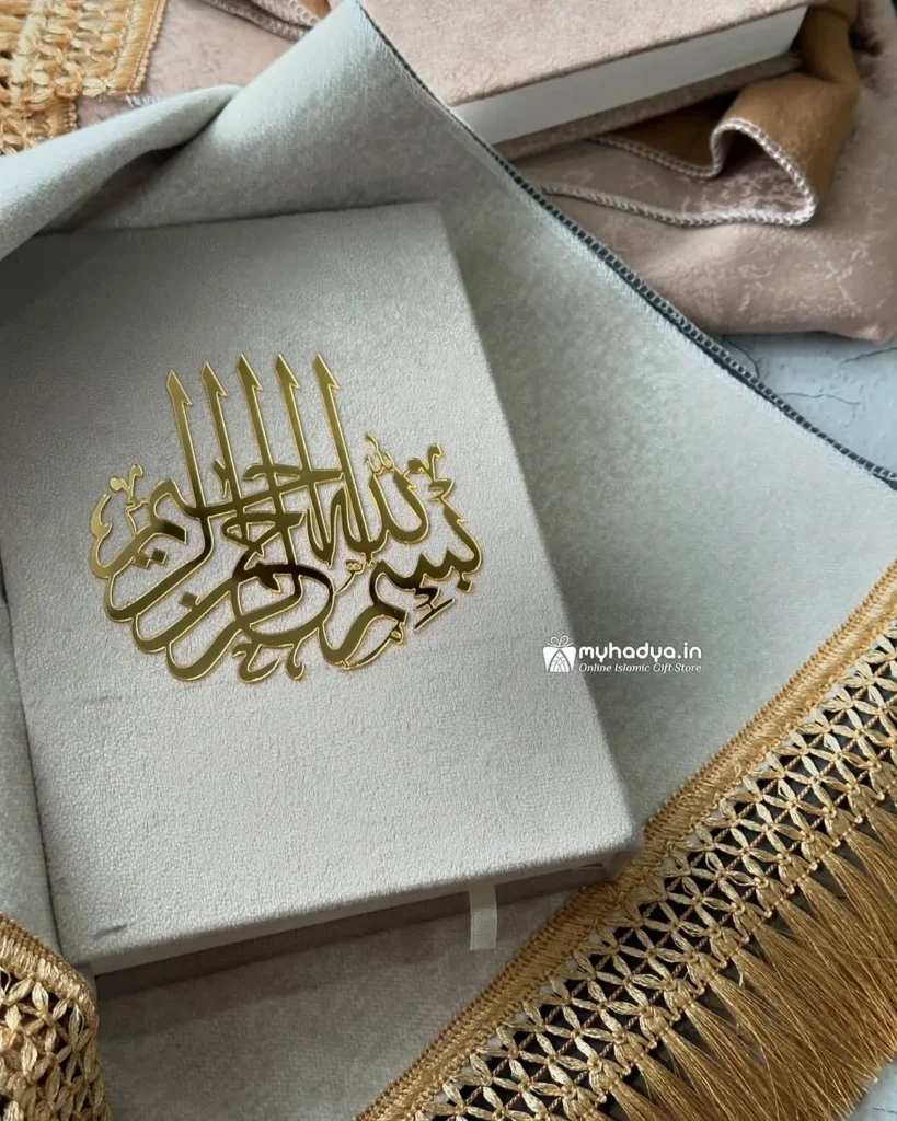 Premium Velvet Quran and Musallah Set | Offwhite | Myhadya Islamic Gifts