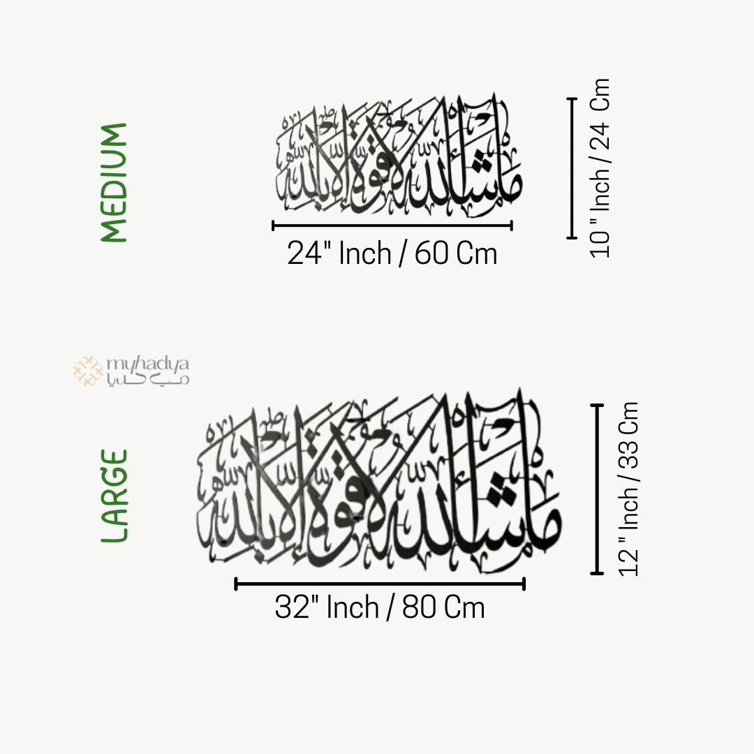 MashaAllah Metal Islamic Wall Art – Bring blessings and elegance to your home with this beautifully crafted Islamic wall decor. The phrase “MashaAllah La quwwata illa billah” translates to “What Allah has willed, there is no power except through Allah” – a reminder of gratitude, faith, and reliance on Allah. Made from premium quality metal with a stylish 3D finish, this wall art is available in Black, Gold,. Perfect for your living room, prayer space, or as a thoughtful Islamic gift.